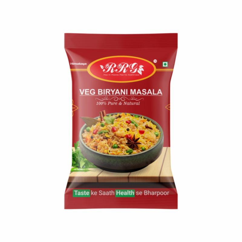 Enjoy the rich, flavorful, and aromatic experience of homemade biryani with RRG Veg Biryani Masala – A must-have for every biryani lover!